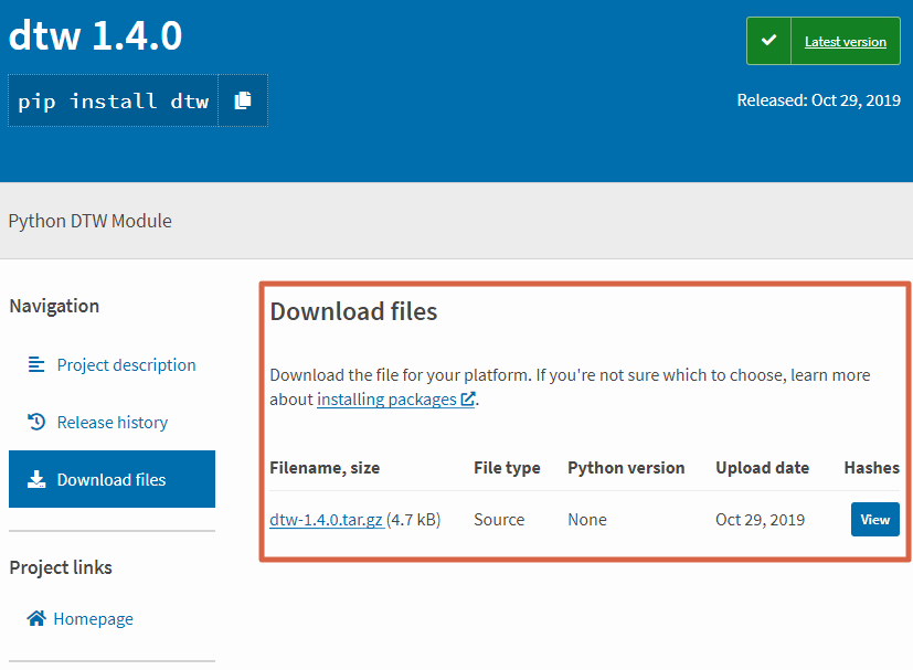 | 1 | numpy | https://pypi.org/project/numpy/1.16.6/#files |
