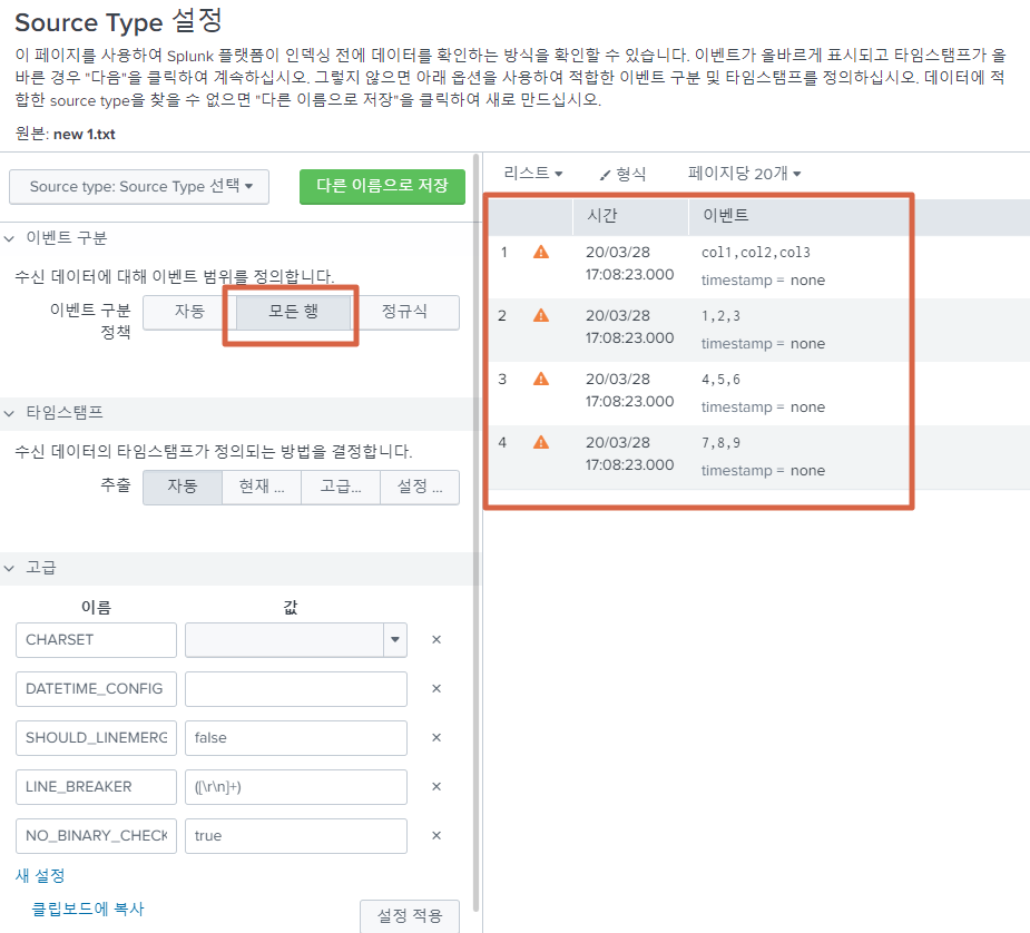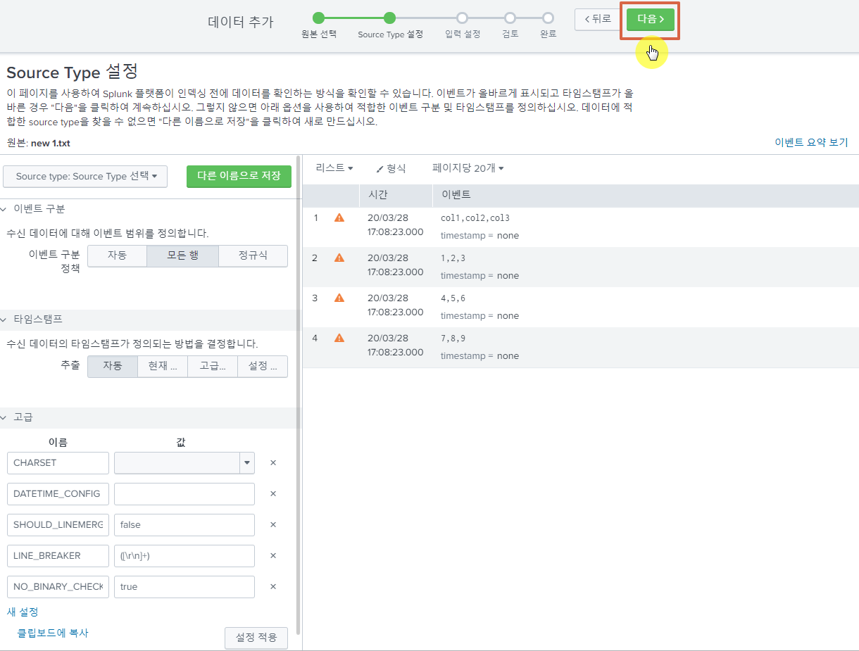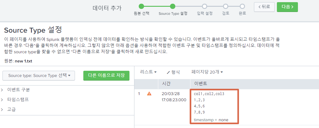 inputs.conf에 sourcetype을 지정하지 않으면 new-too_small이된다.