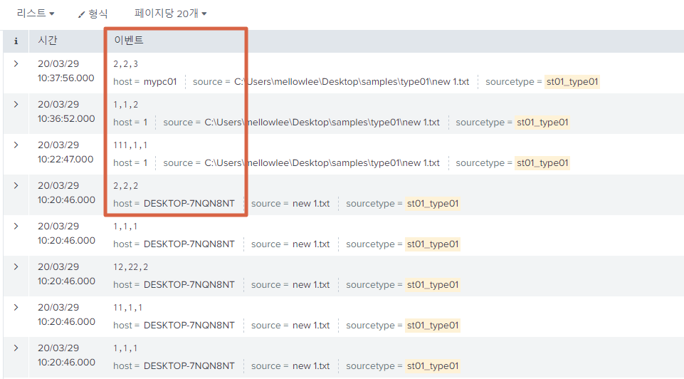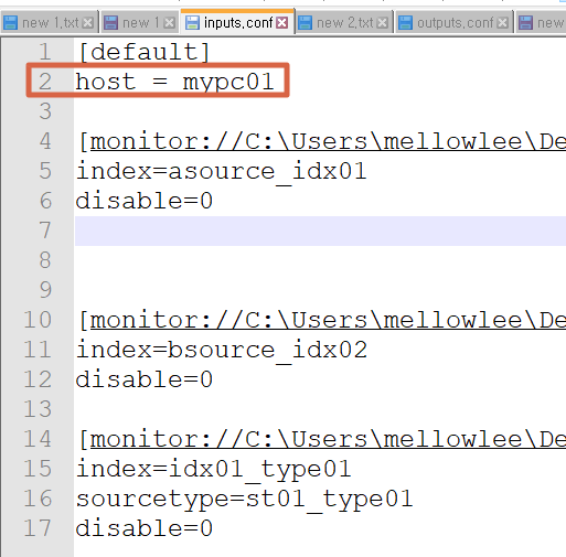 host의 이름은 inputs.conf의 host로 지정할 수 있다.