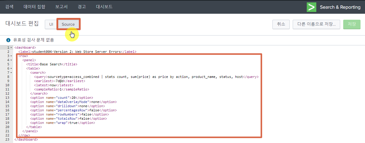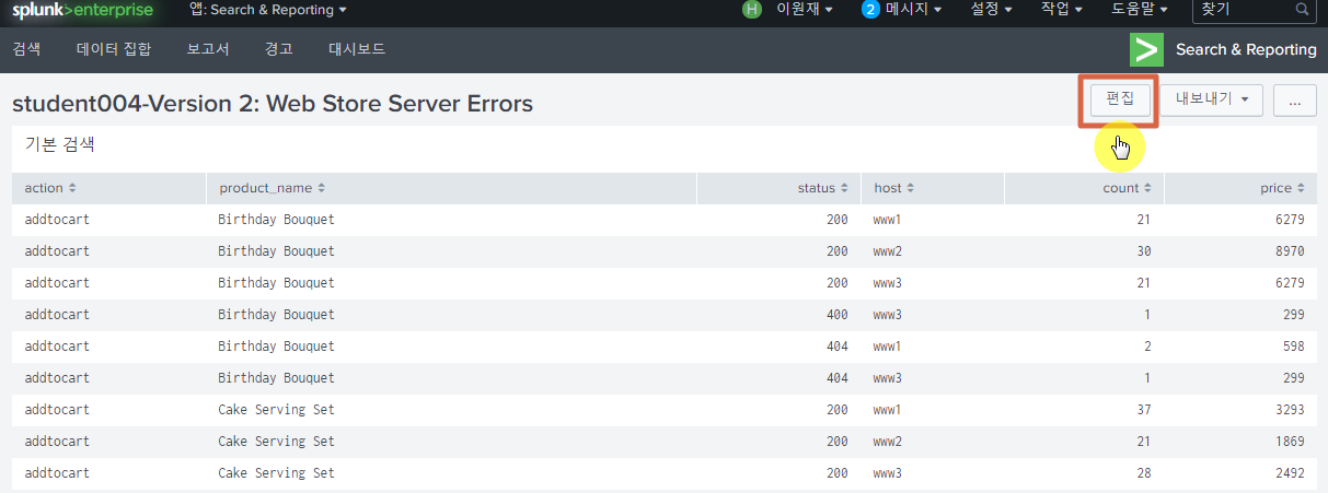 | 대시보드 제목 | student004-Version 2: Web Store Server Errors |