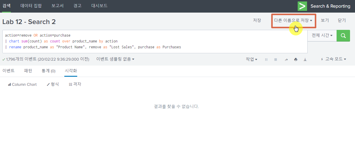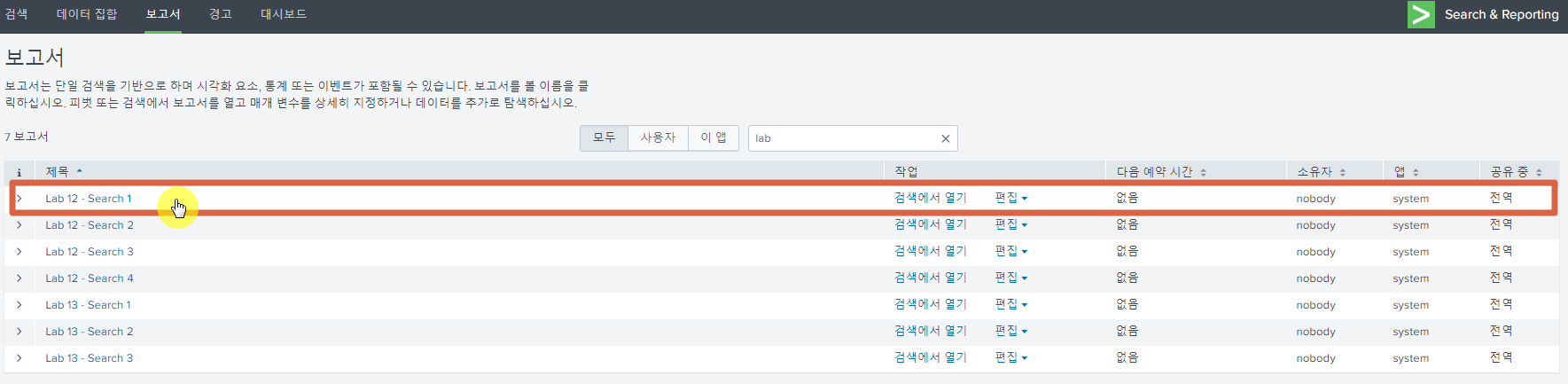 보고서 → Lab 12 - Search 2의 검색에서 열기 선택