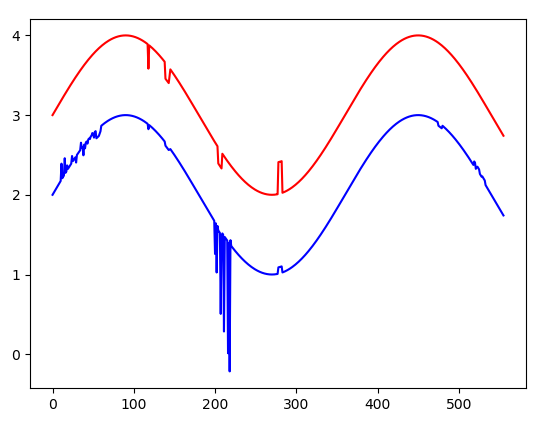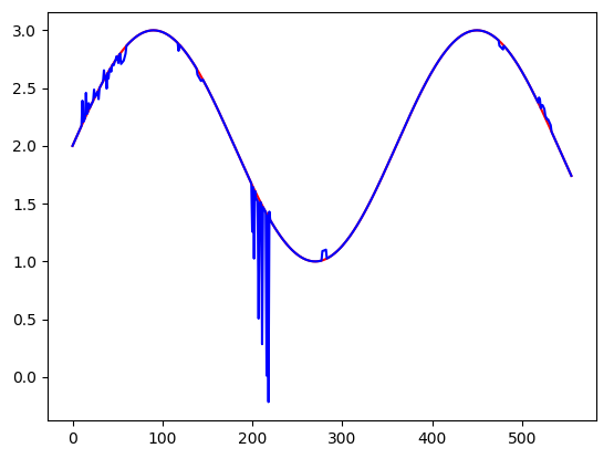 plt.plot(range(len(group['sin'])), group['sin'], 'r-')