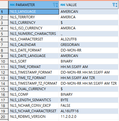 SELECT * FROM NLS_DATABASE_PARAMETERS